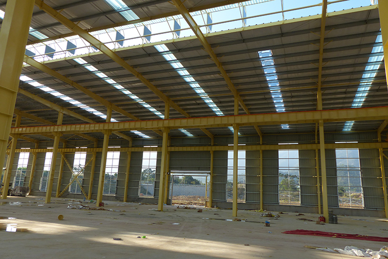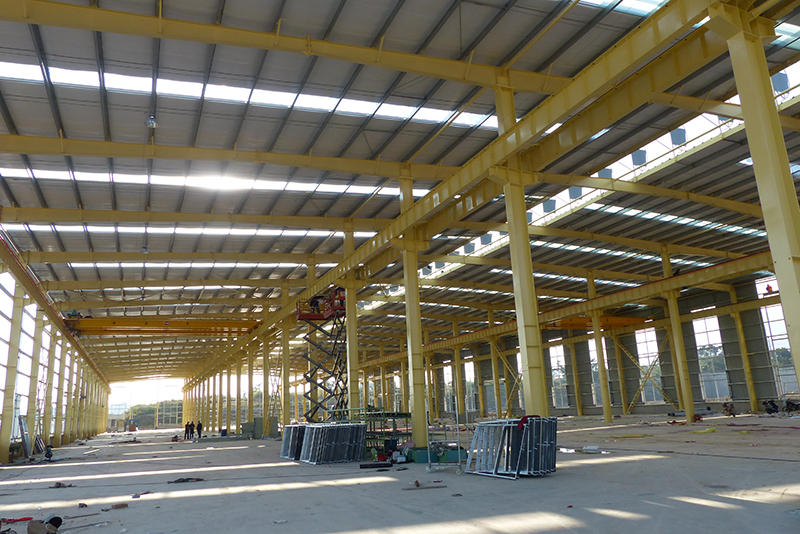 2016年12月23日,一号厂房屋顶基本搭建完毕,开始安装吊机